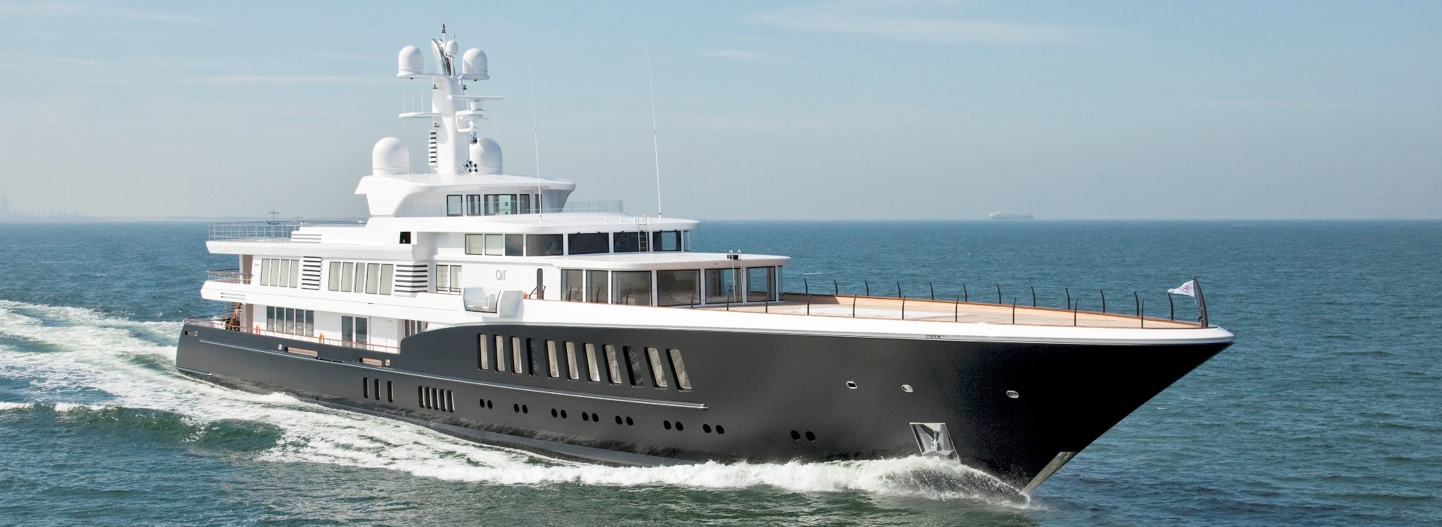 81m yacht "Air" was built in 2011 by Feadship. The interior of the yacht was designed by Remi Tessier in collaboration with Studio Boissard and exterior design by De Voogt. Interior allows for up to 12 guests. Timeless style, custom cabinetry throughout the living space to create an elegant and comfortable atmosphere which includes a gym, Jacuzzi, helicopter landing pad, spa, elevator, pool, steam room, and a cinema room